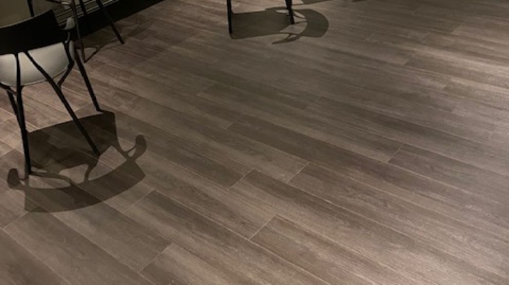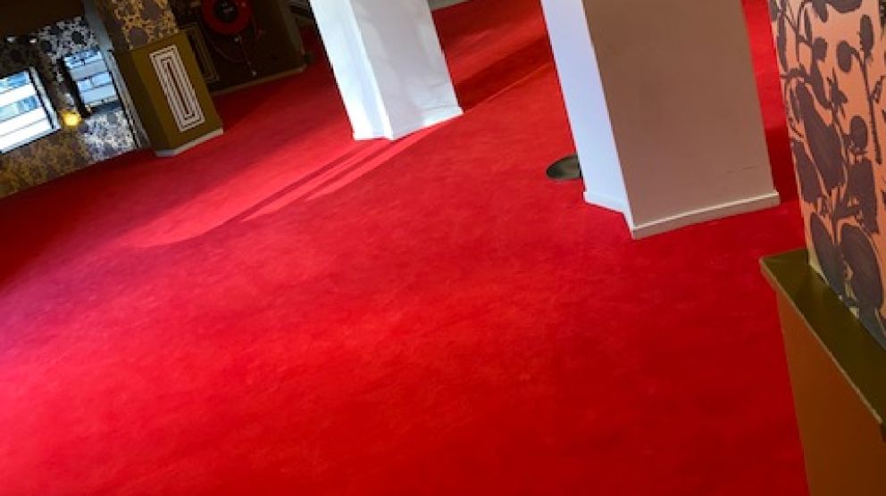 In de grote zaal brachten we vloerbedekking aan op de geluidwerende Fermacell-onderlaag.