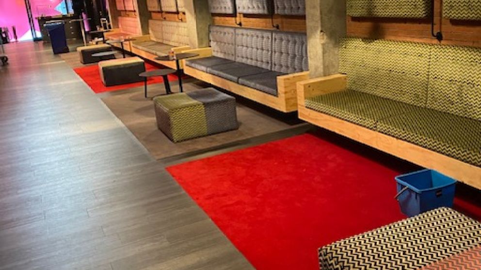 Het ging om brandvertragend Lano-tapijt. Op de trappen, aan weerszijden van de zaal, legden we pvc- met een lopermotief. Hiervoor vulden we vloeren uit. Verder legden we combinaties van pvc en vloerbedekking in alle foyers en kleedkamers en op de trappen naar de verdiepingen. Alle vloeren voldoen aan gebruiksklasse 33 (zeer intensief belopen ruimtes). We voerden de klus uit in nauwe afstemming met alle uitvoerende partijen op de locatie.